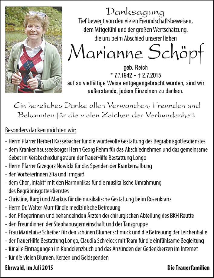 tief bewegt sitze ich vor dem Bild eurer Schwester Marianne, die euch so unerwartet verlassen hat.