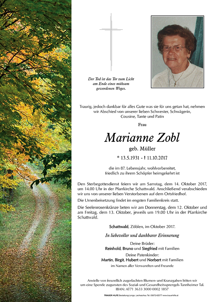 Liebe Marianne, danke für alles! Du hast mir viel erzählt ja Marianne es bleibt in meinem Herzen, nun bist du bei deinem Richard, dein Wunsch ging in Erfüllung! Ich bin traurig doch gleichzeitig glücklich! Ihr beide seid nun vereint für immer und ewig! Ruhet in Frieden Marianne und Richard! Danke für alles eure Claudia