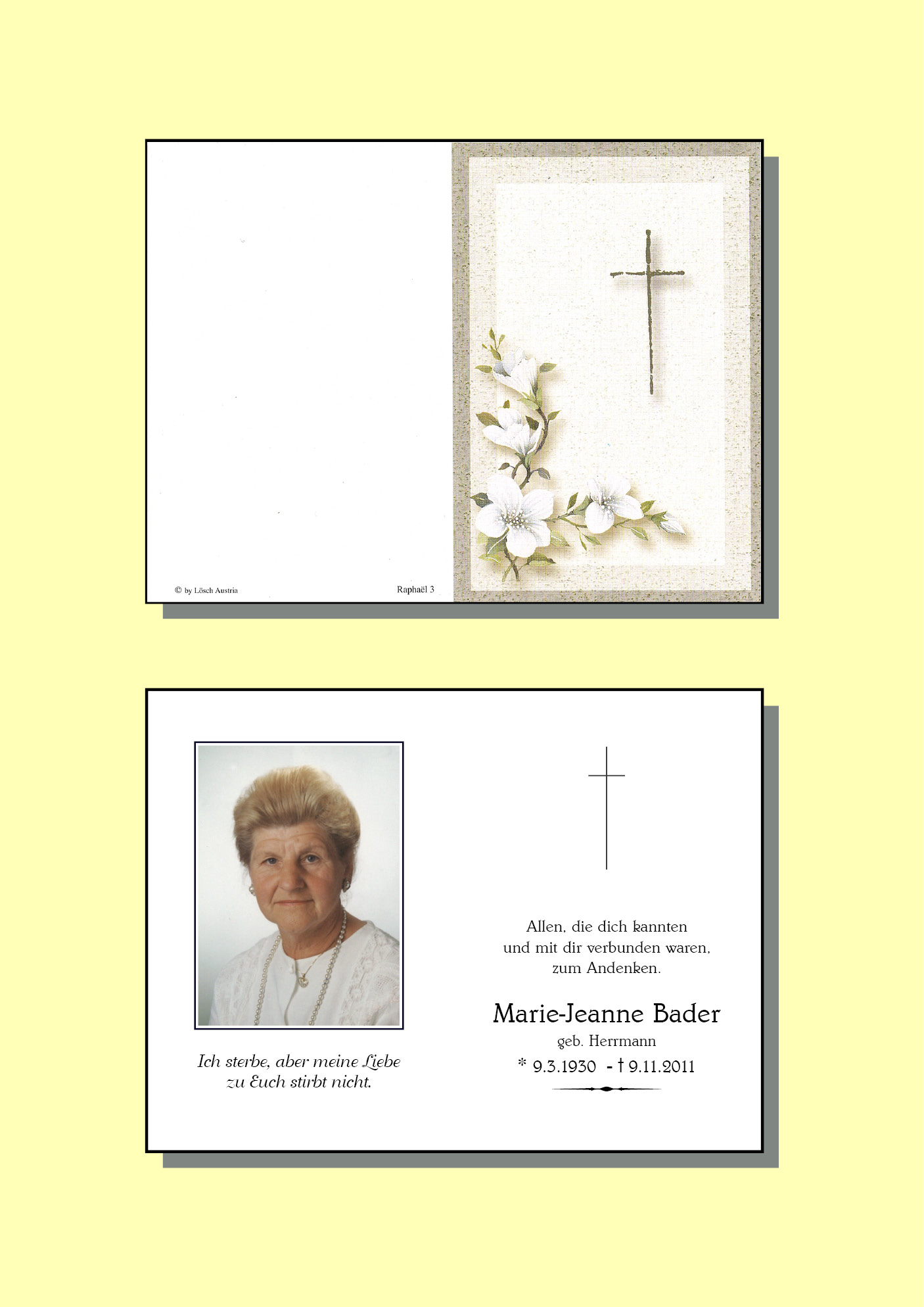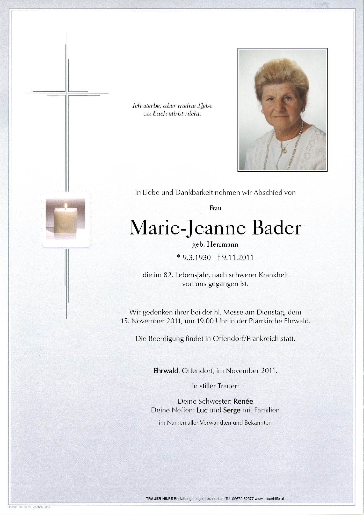 Kondolenzbuch für Marie-Jeanne Bader