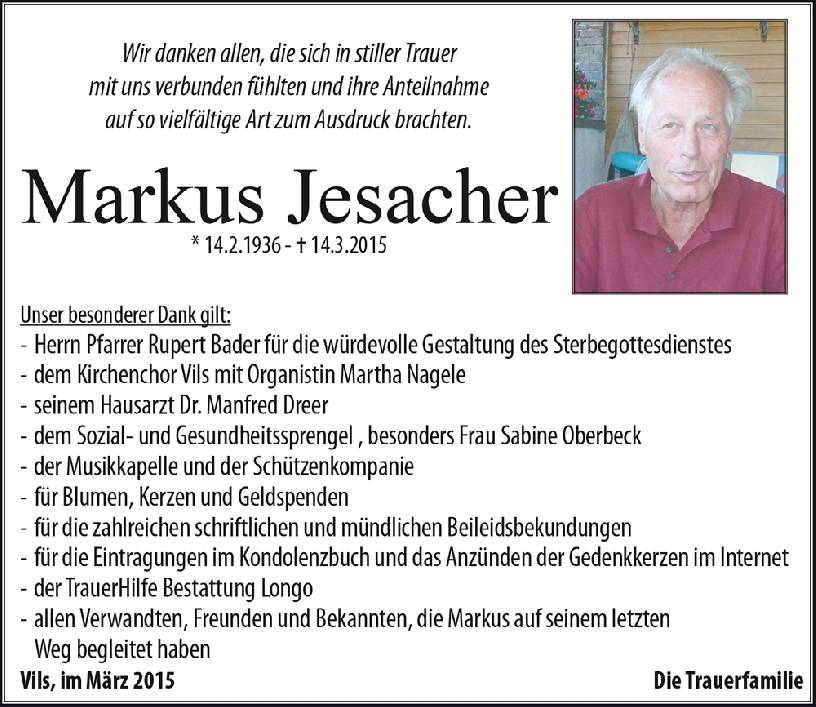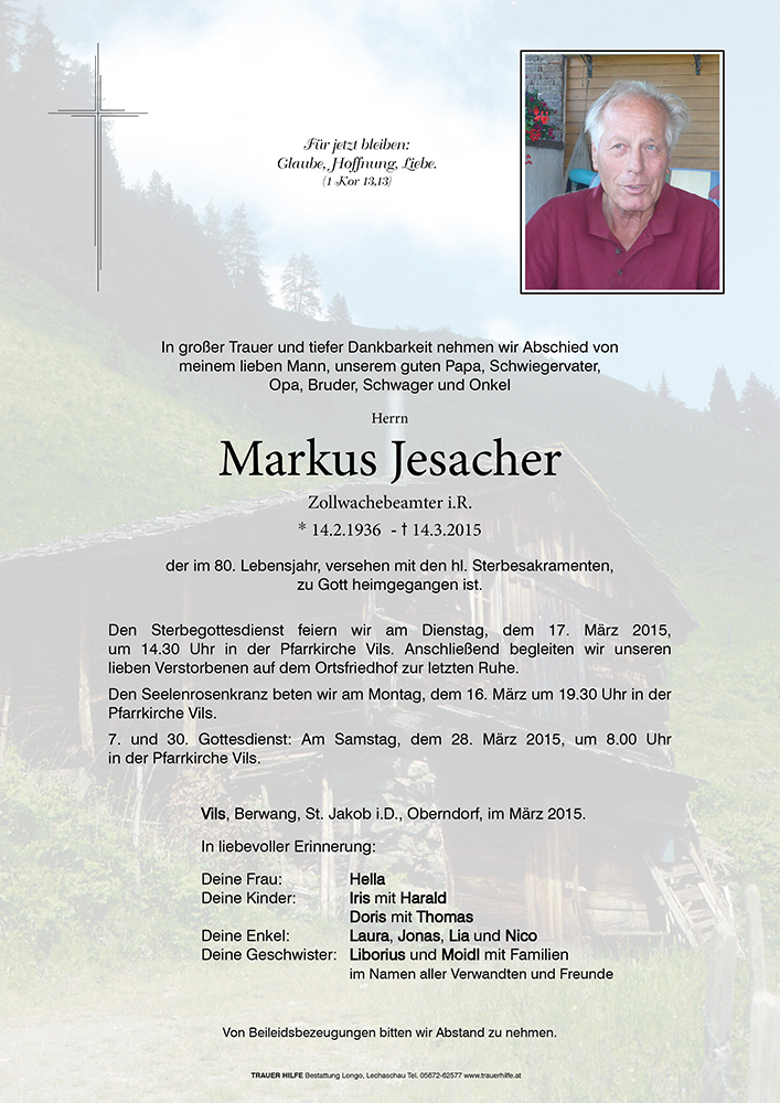 Kondolenzbuch für Markus Jesacher