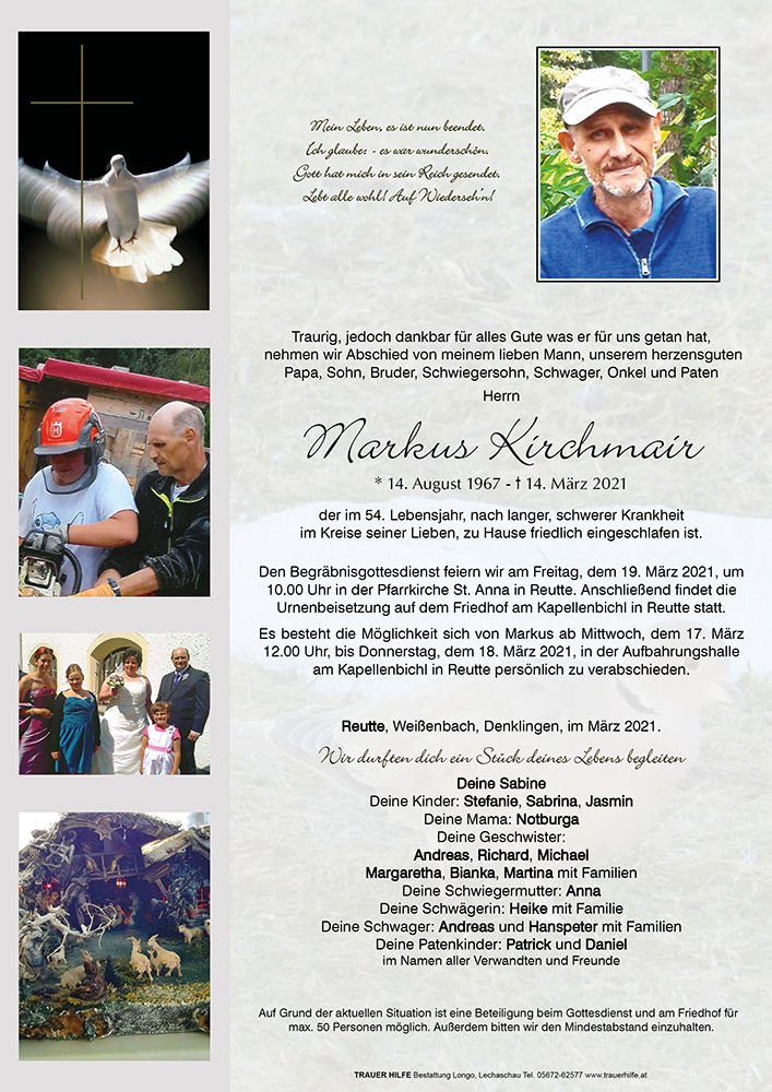 Kondolenzbuch für Markus Kirchmair