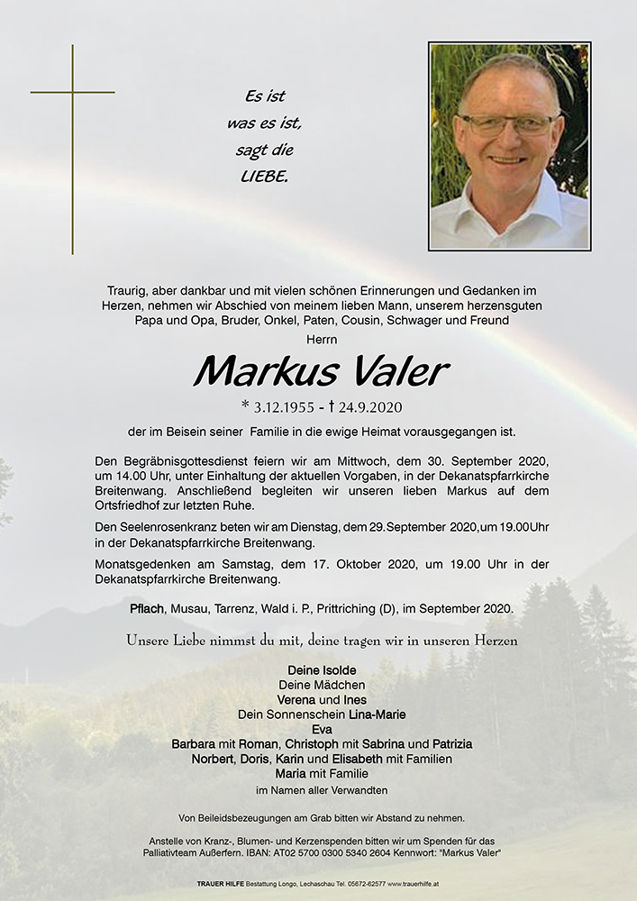 Kondolenzbuch für Markus Valer