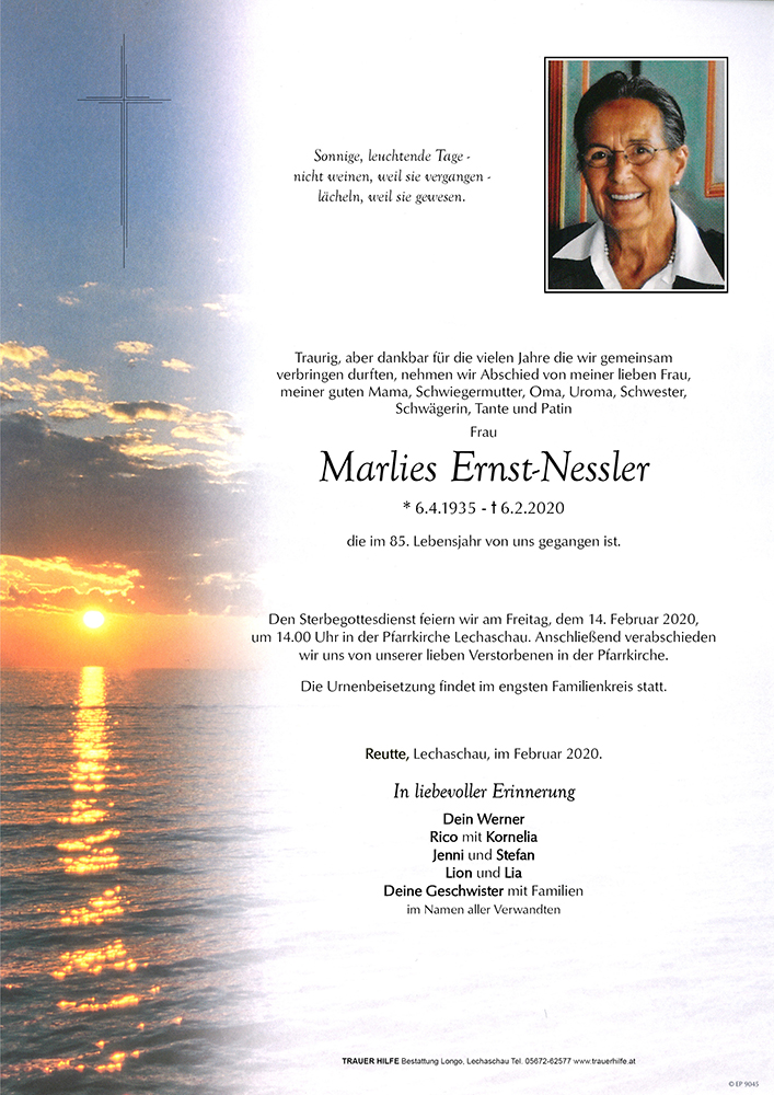 Kondolenzbuch für Marlies Ernst-Nessler