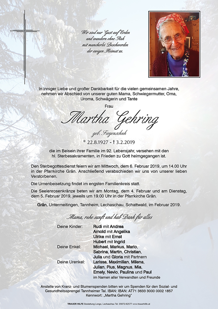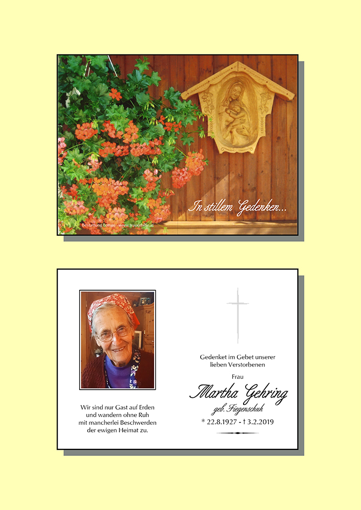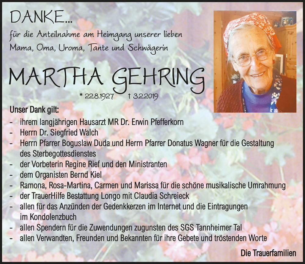 Kondolenzbuch für Martha Gehring