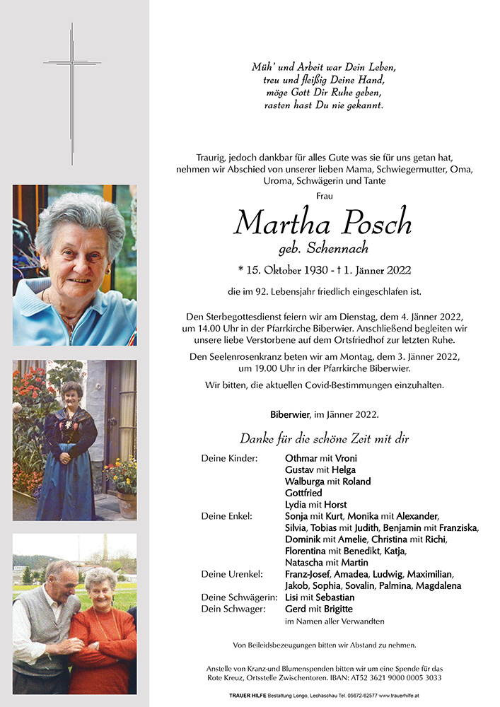 Kondolenzbuch fĂŒr Martha Posch