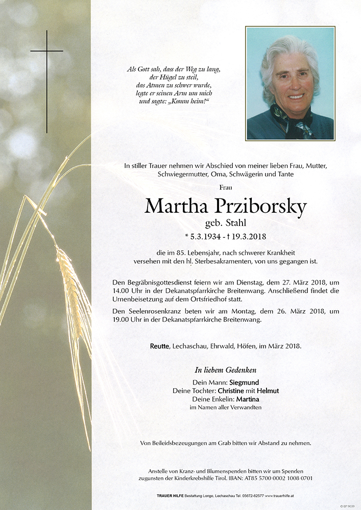 Kondolenzbuch für Martha Prziborsky