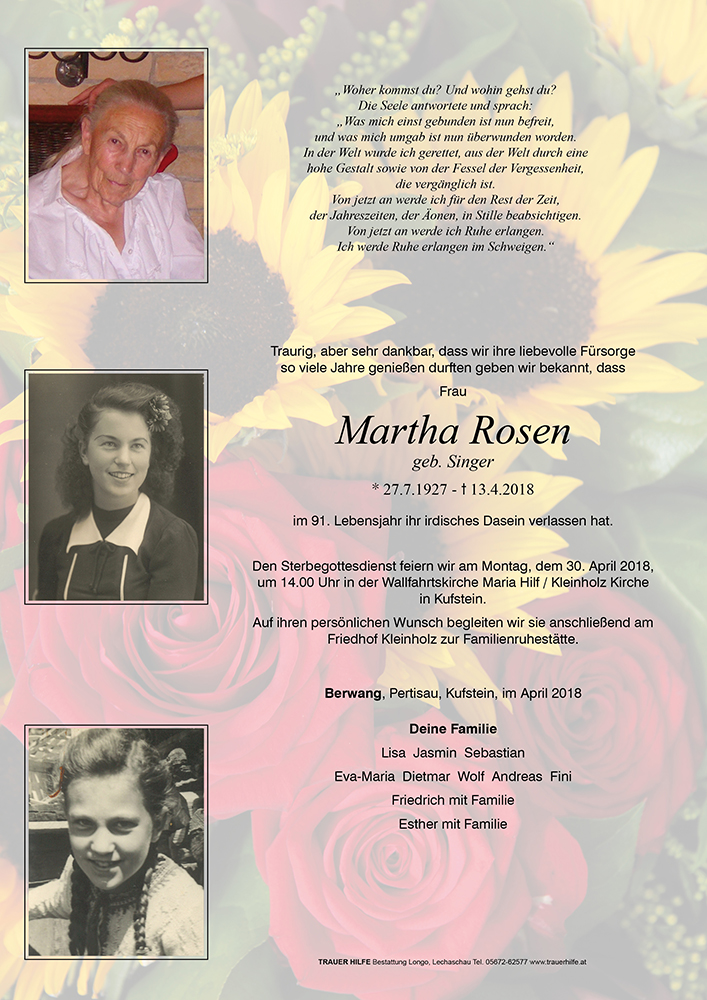 Wunderbar die Bilder nebeneinander gestellt, die ein ganzes Leben zeigen.