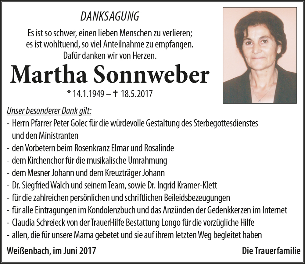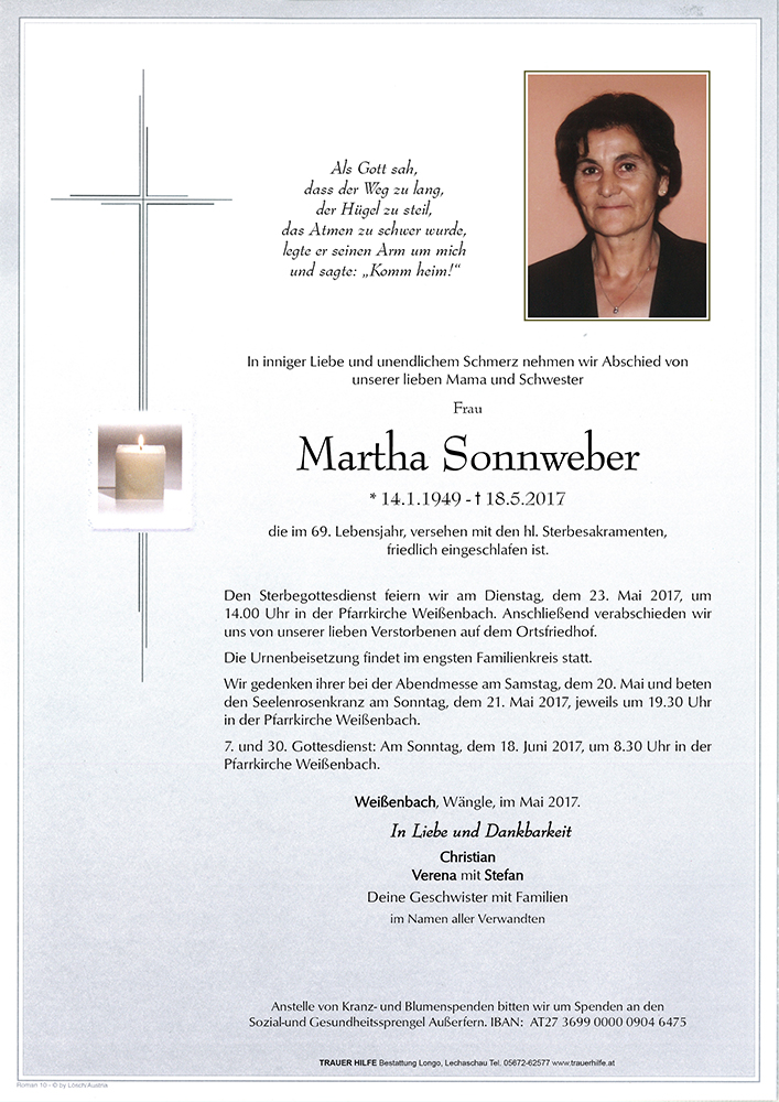 Kondolenzbuch für Martha Sonnweber
