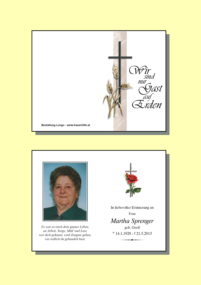 Kondolenzbuch fĂŒr Martha Sprenger