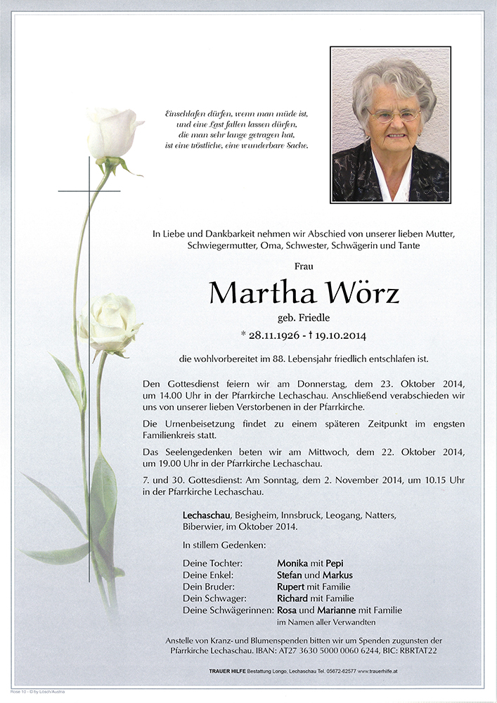 Kondolenzbuch für Martha Wörz