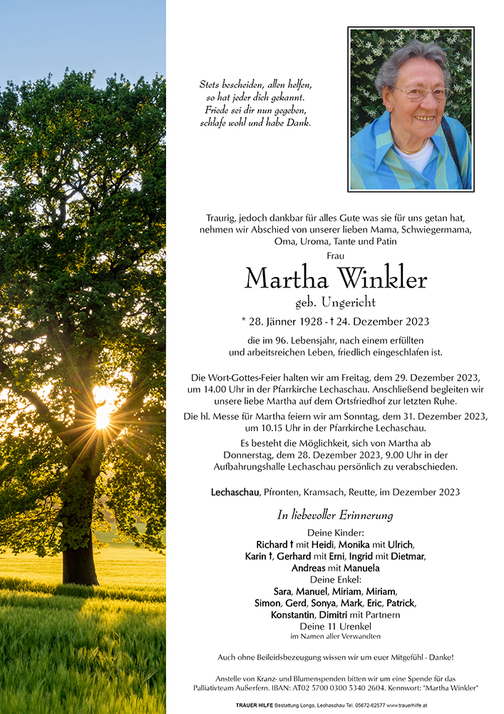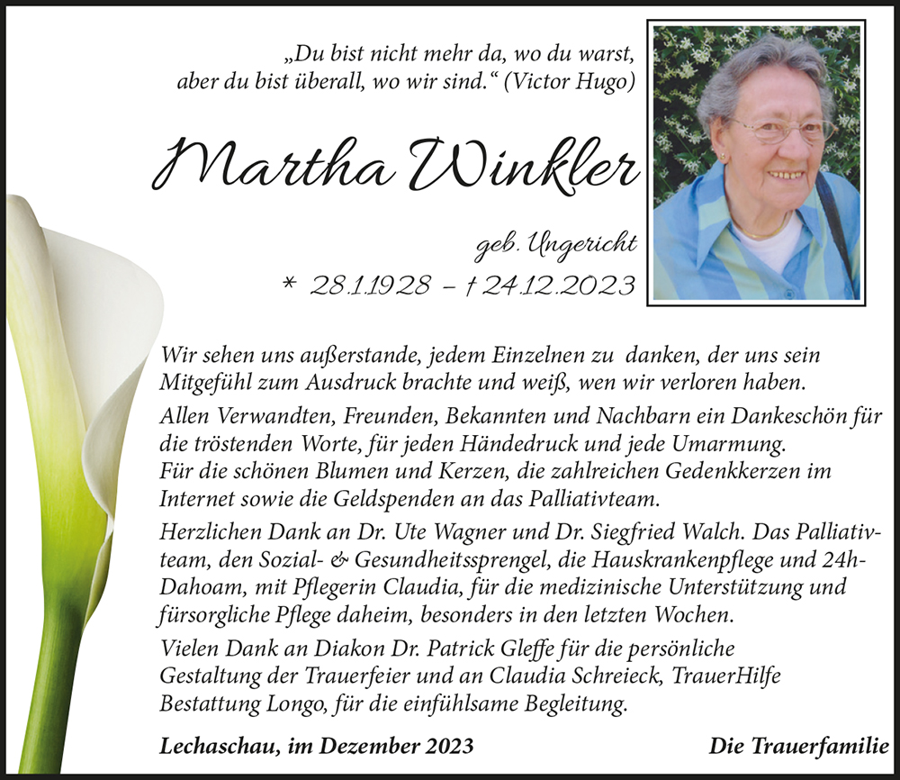 Martha ruhe in Frieden und Danke, Danke für alles ,ich beuge mich vor dir.