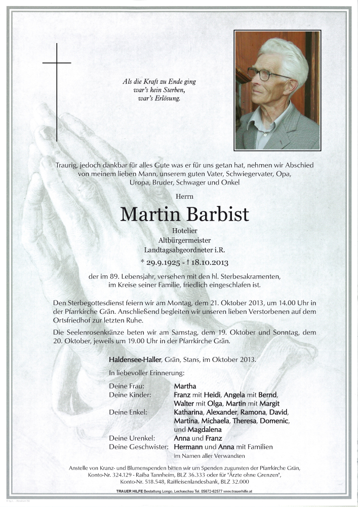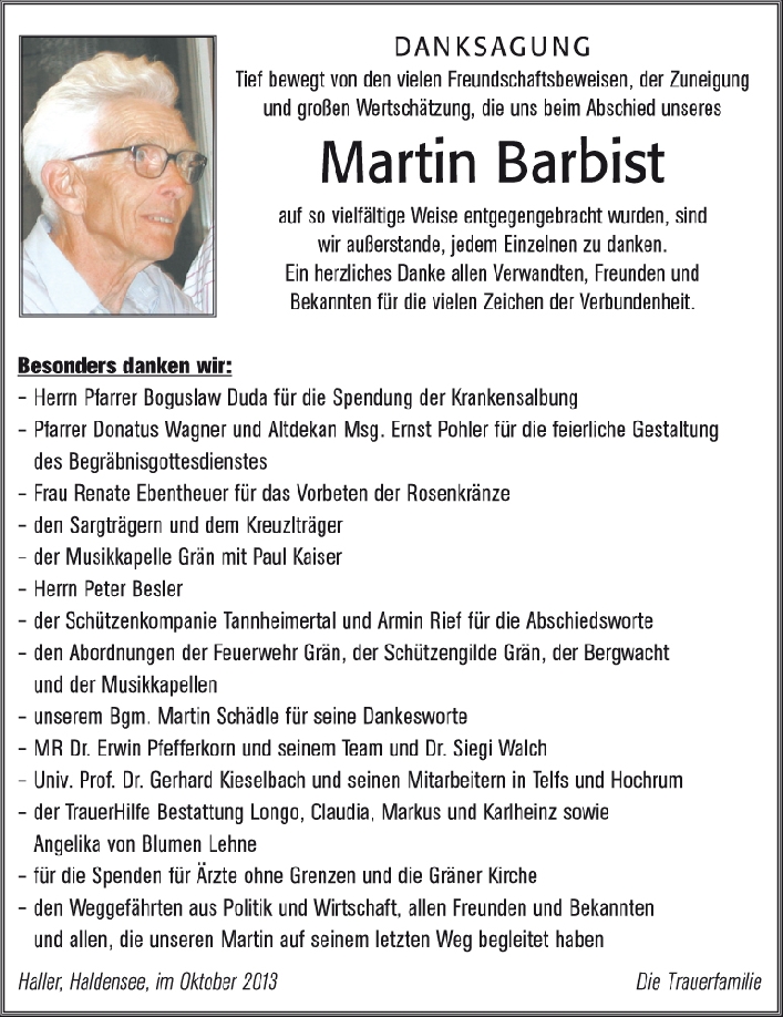 Kondolenzbuch für Martin Barbist