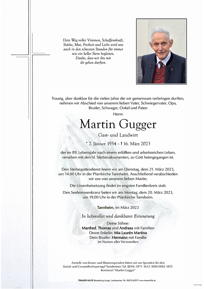 Kondolenzbuch für Martin Gugger