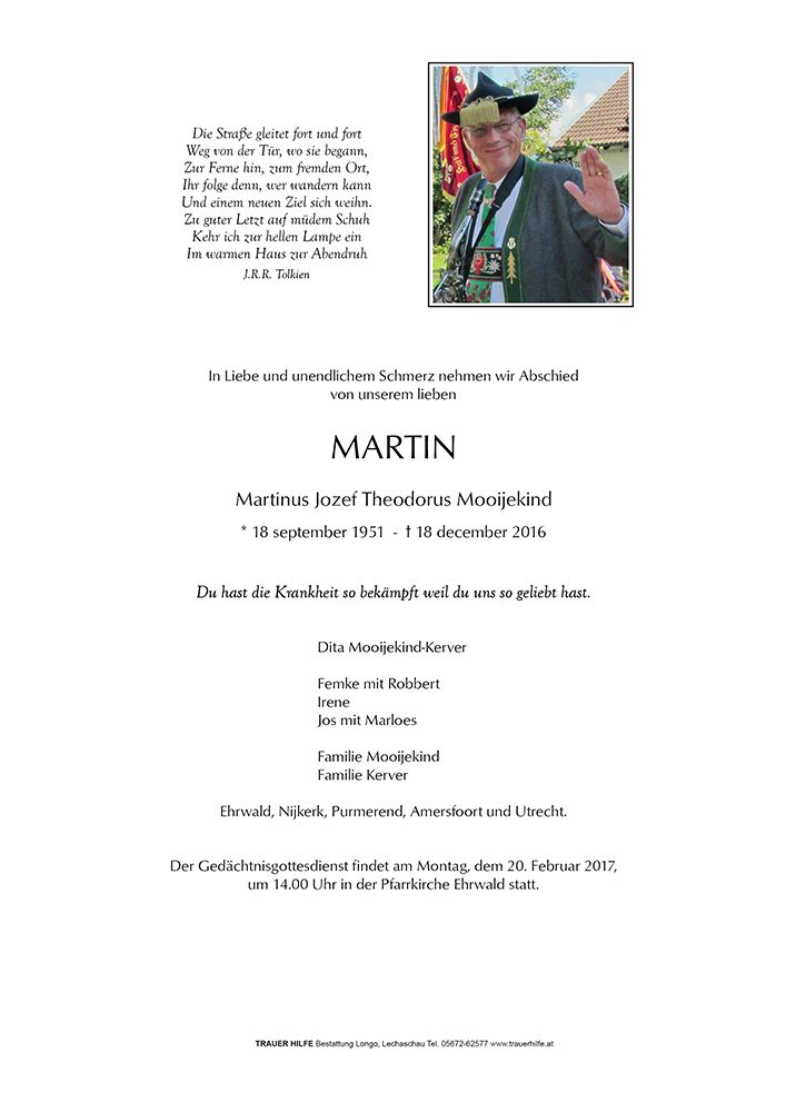 Kondolenzbuch für Martin Mooijekind