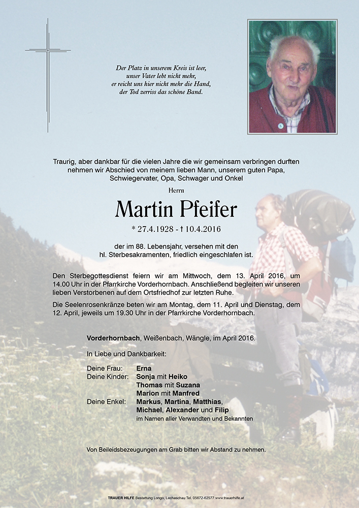 Kondolenzbuch für Martin Pfeifer