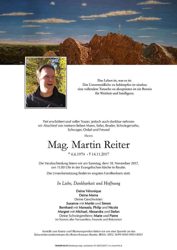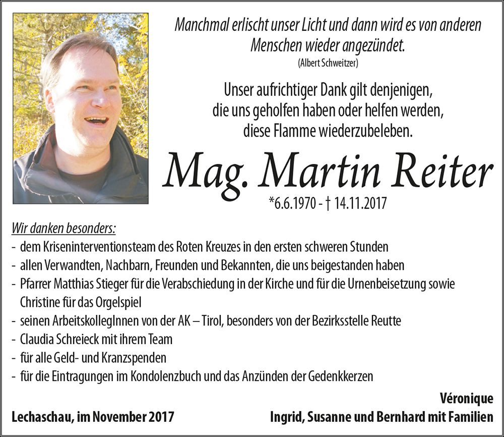 Martin wurden von mir und von vielen Kolleginnen und Kollegen wegen seiner unaufdringlichen, ruhigen und doch so kompetenten und sozialen Art sehr geschätzt. So wollen wir ihn in Erinnerung behalten. Er wird uns allen sehr fehlen.