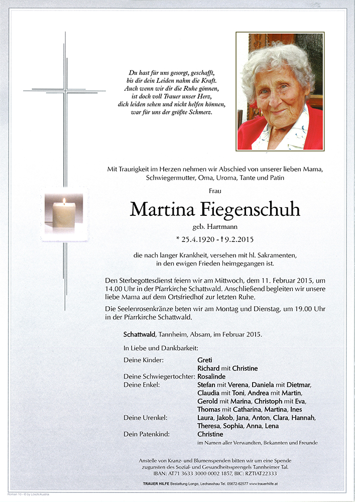 Aufrichtige Anteilnahme am Heimgang Eurer lieben Mutter entbietet Paulweber Tilly aus Ehrwald!
