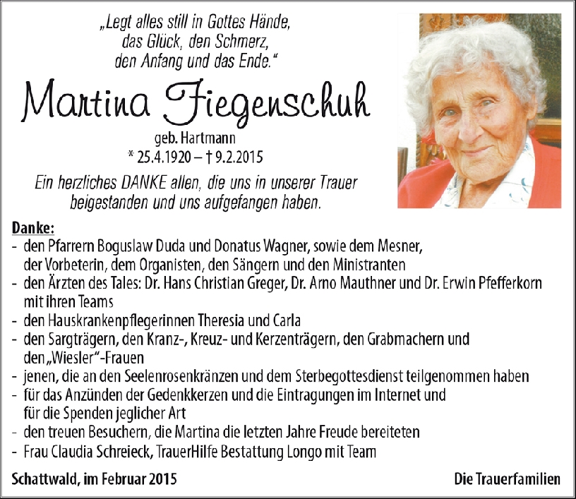 Kondolenzbuch für Martina Fiegenschuh