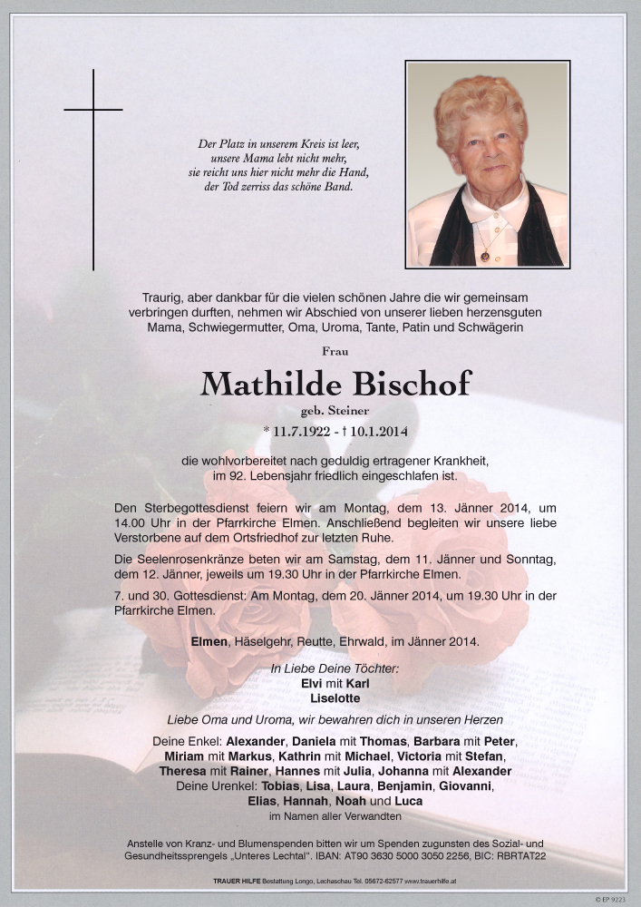 Kondolenzbuch für Mathilde Bischof