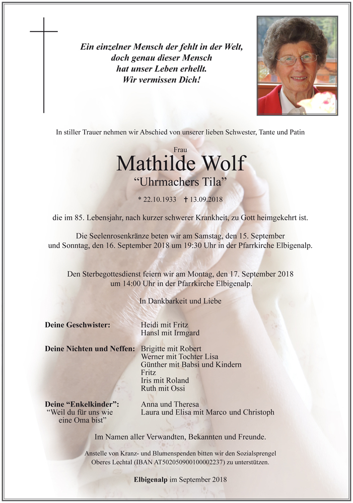 Kondolenzbuch für Mathilde Wolf