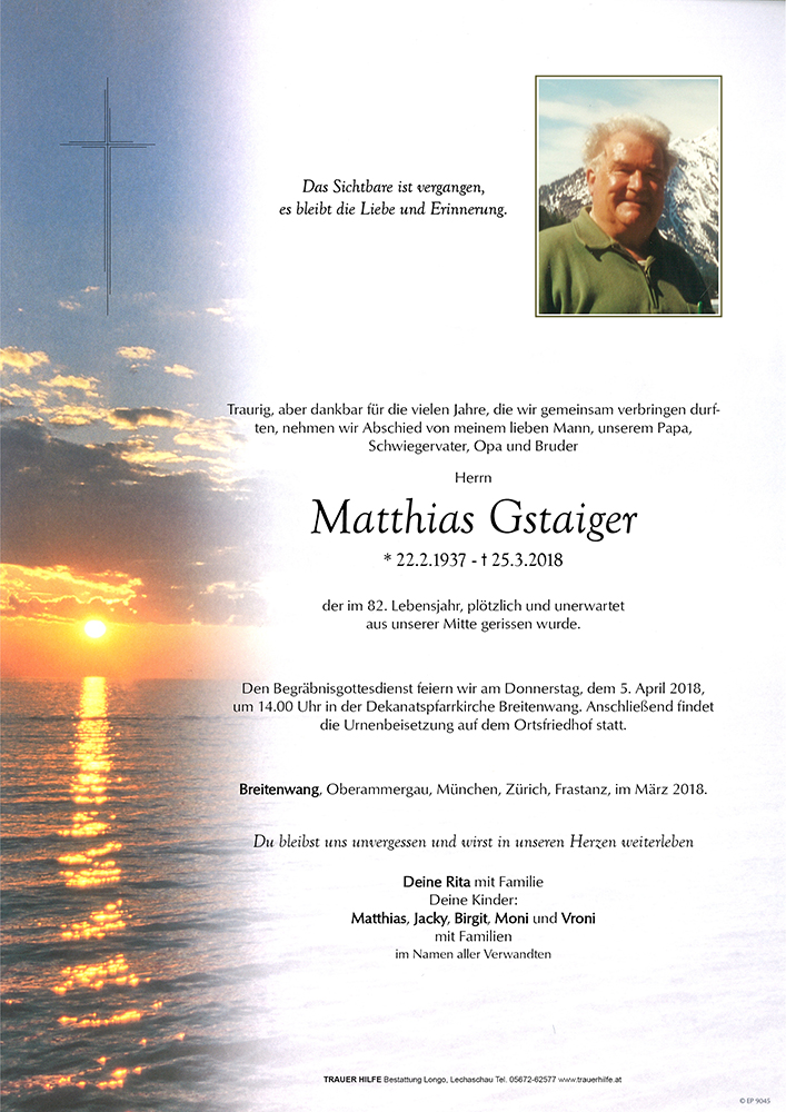 Fam. Ingeborg u. Gerfried Mayr 03.04.2018 um 06:44 Uhr
