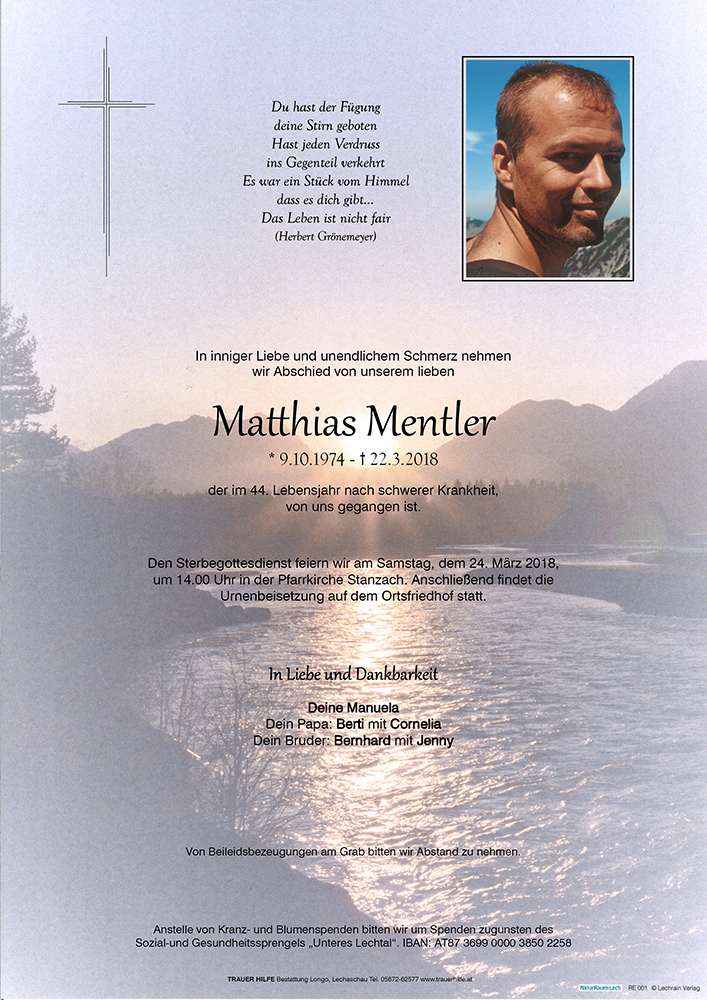 Liebe Manuela, Meine aufrichtige Anteilnahme! Ich bin sicher, Matthias ist jetzt bei seiner Mama, die meine Schulfreundin war.