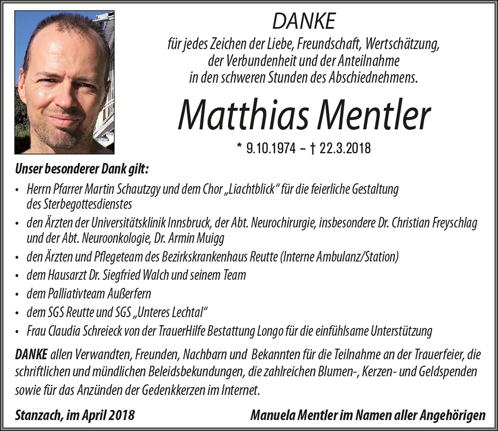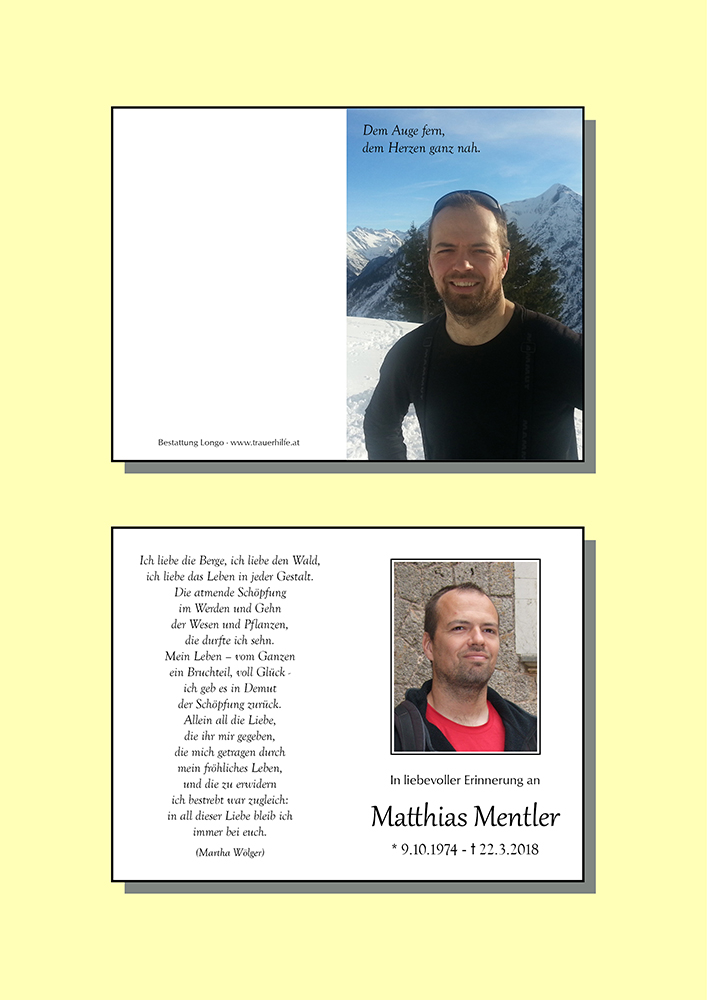 Ich wünsche der Familie MENTLER und Freundin mein herzliches Beileid und viel Kraft in den schweren Stunden des Abschieds