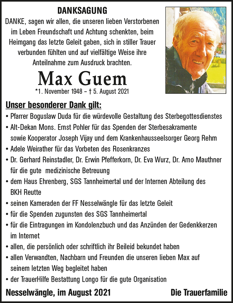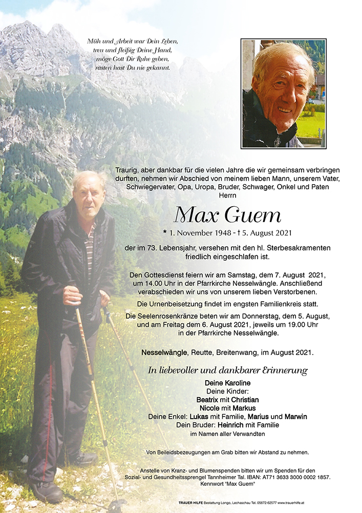 Kondolenzbuch für Max Guem