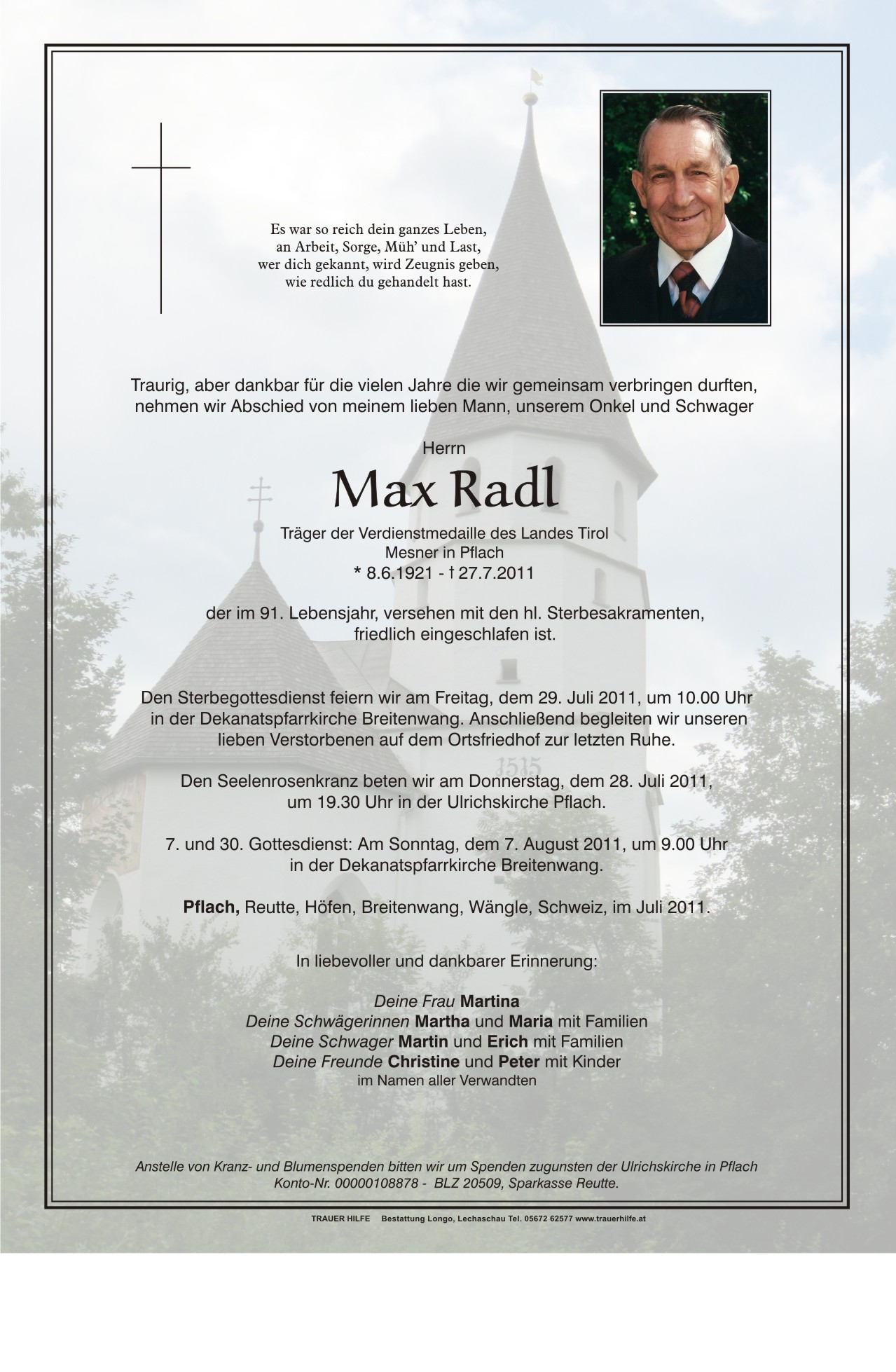 13.12.1901 27.07.2011 Breitenwang Max Radl Action Parte Sterbebild Gedenkkerzen Kondolenzen Parte Sterbebild Gedenkkerzen Kondolenzen Parte herunterladen Sterbebild herunterladen Gedenkkerzen für Max Radl 10 Einträge Kerze anzünden Für Max und Martina Hosp Josef hosp josef hosp josef Hosp Josef Fam. Radl Walter, Rum hosp josef biberwier Hosp Josef Sigrid mit Familie Ein Licht für Dich Ihre Gedenkkerze fürMax Radl Ihr Name* Farbe auswählen Ihre Nachricht oder Name* E-Mail-Adresse* Mit dem Klicken auf "Kerze anzünden" erklären Sie sich mit unseren Datenschutzbestimmungen einverstanden. Kondolenzbuch für Max Radl 0 Einträge Kondolenz verfassen Ihr Abschiedsgruß an Max Radl Ihr Name* E-Mail-Adresse* Ihre Nachricht* Mit dem Klicken auf "Gruß absenden" erklären Sie sich mit unseren Datenschutzbestimmungen einverstanden.