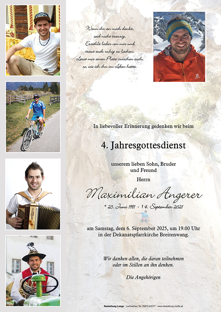 Ich habe keine Worte, die euren Schmerz lindern könnten. Haltet zusammen, redet und lacht über Max, so wird er immer ein kleines Stück bei euch sein.