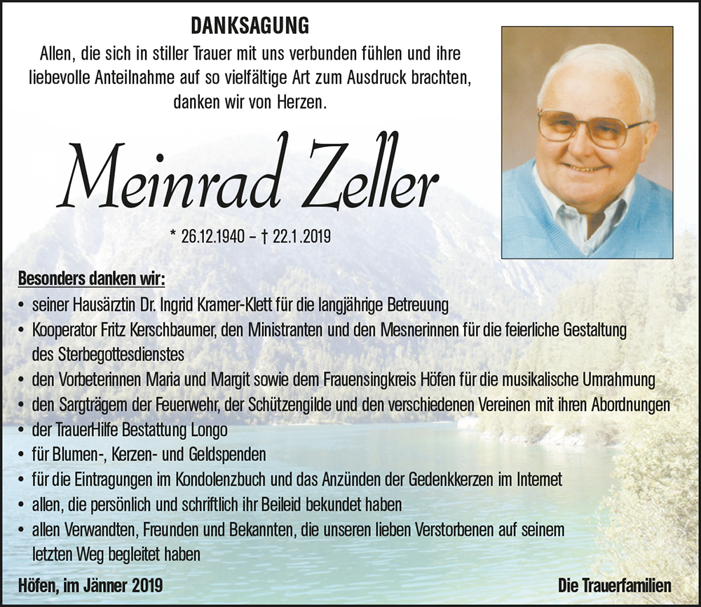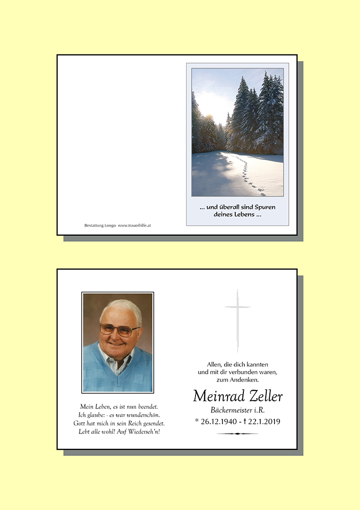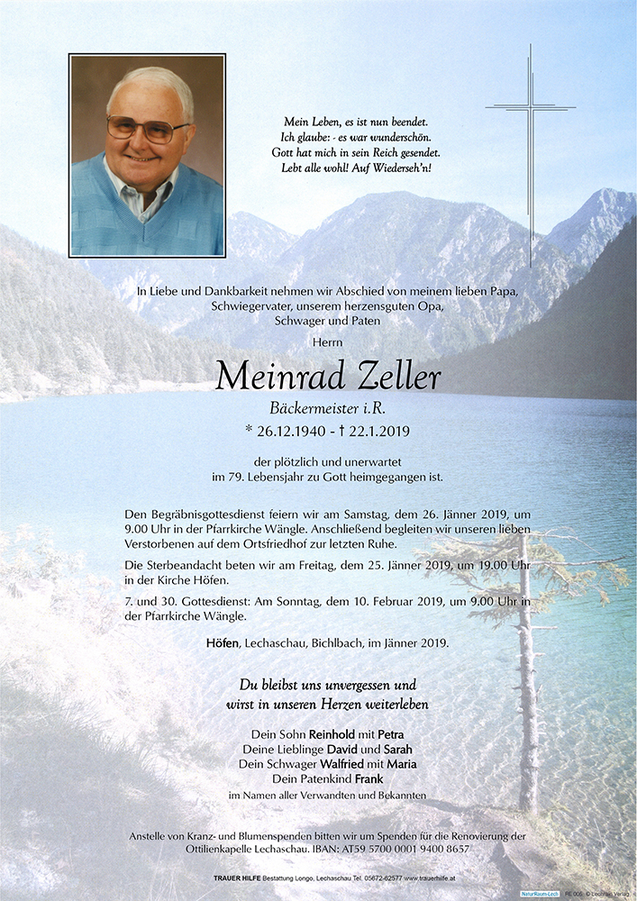 Das Leben ist vergänglich, doch die Spuren seines Lebens, seiner Hände Werk und die Zeit mit ihm wird stets in uns lebendig sein. Zum Tode Deines Vaters und Opas möchten wir Euch unser allertiefstes Mitleid entbieten. Meinrad war immer bei all unseren Treffen und Ausflügen dabei und wir hatten auch immer viel Spass und Freude.