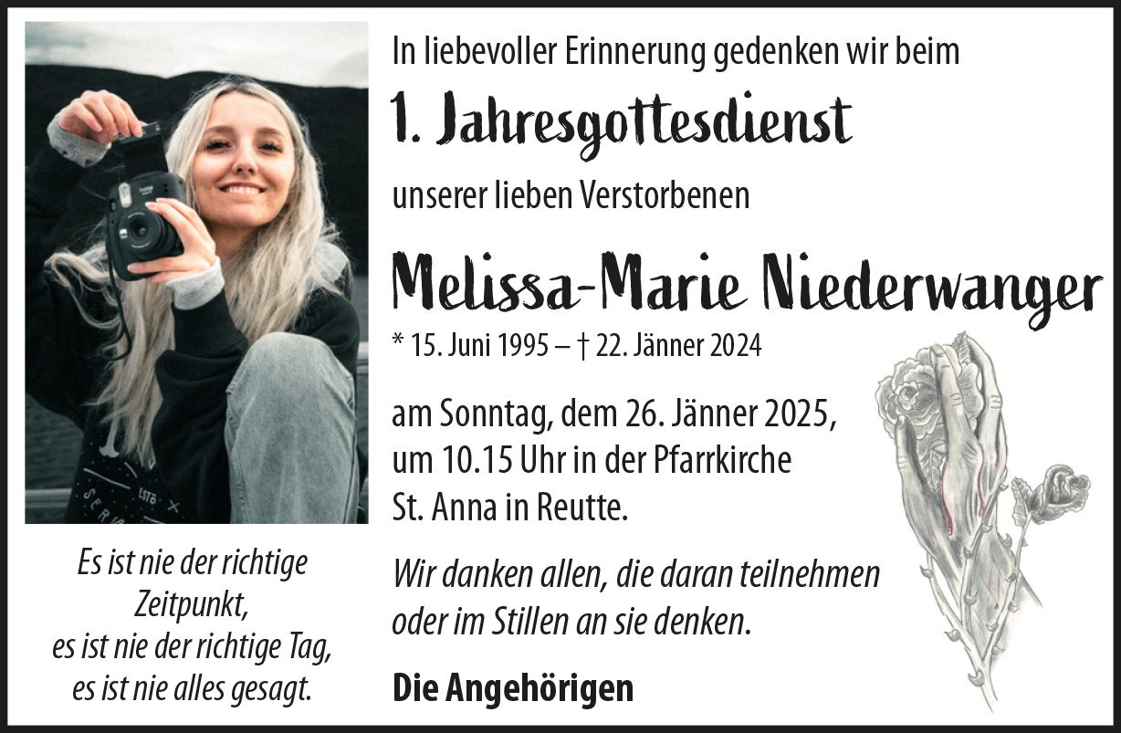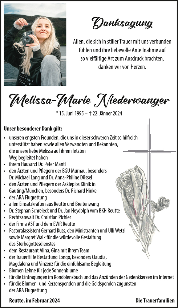 Kondolenzbuch für Melissa-Marie Niederwanger