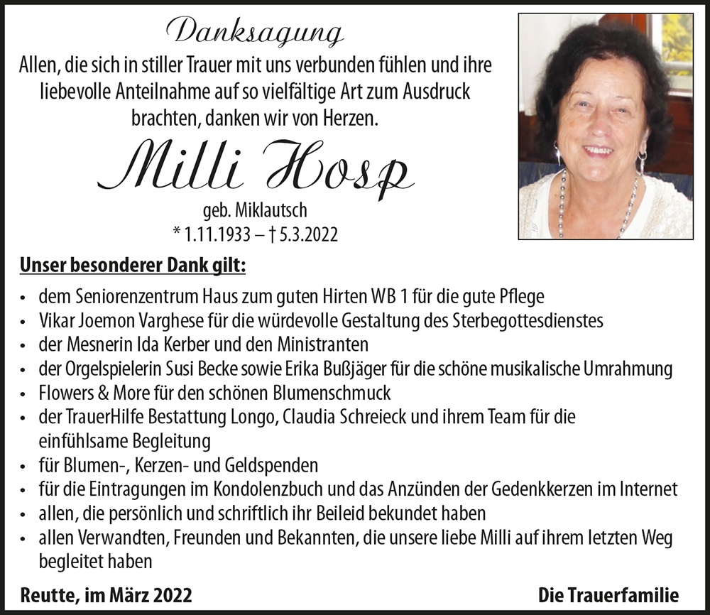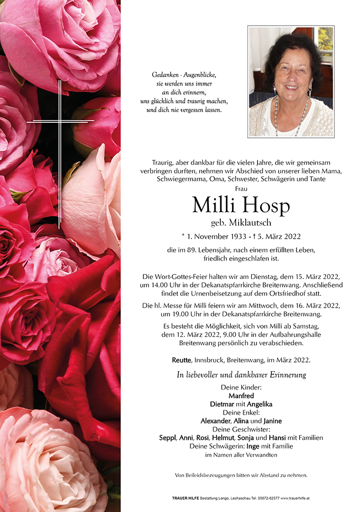 Kondolenzbuch für Milli Hosp
