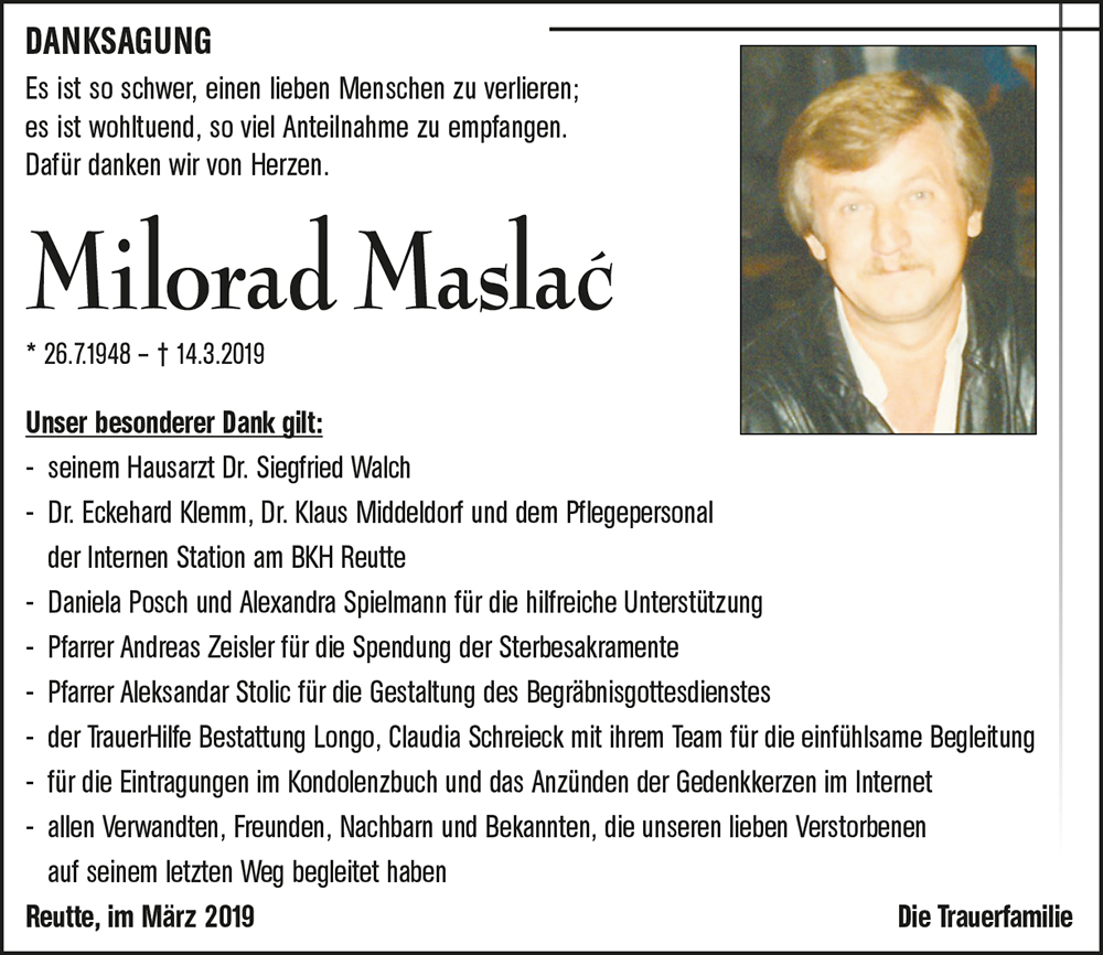 Lieber Milorad, gerne erinnere ich mich an unsere oft langen Gespräche und deine Hilfe und guten Tipps bei meinen kleinen "Bauvorhaben". Hab Dank für alles und ruhe nun in Frieden! Mit dir verlieren wir einen ganz feinen Nachbarn!