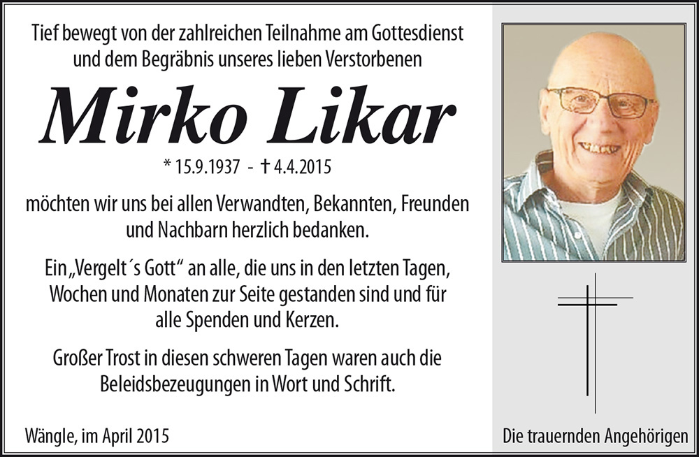 Kondolenzbuch für Mirko Likar