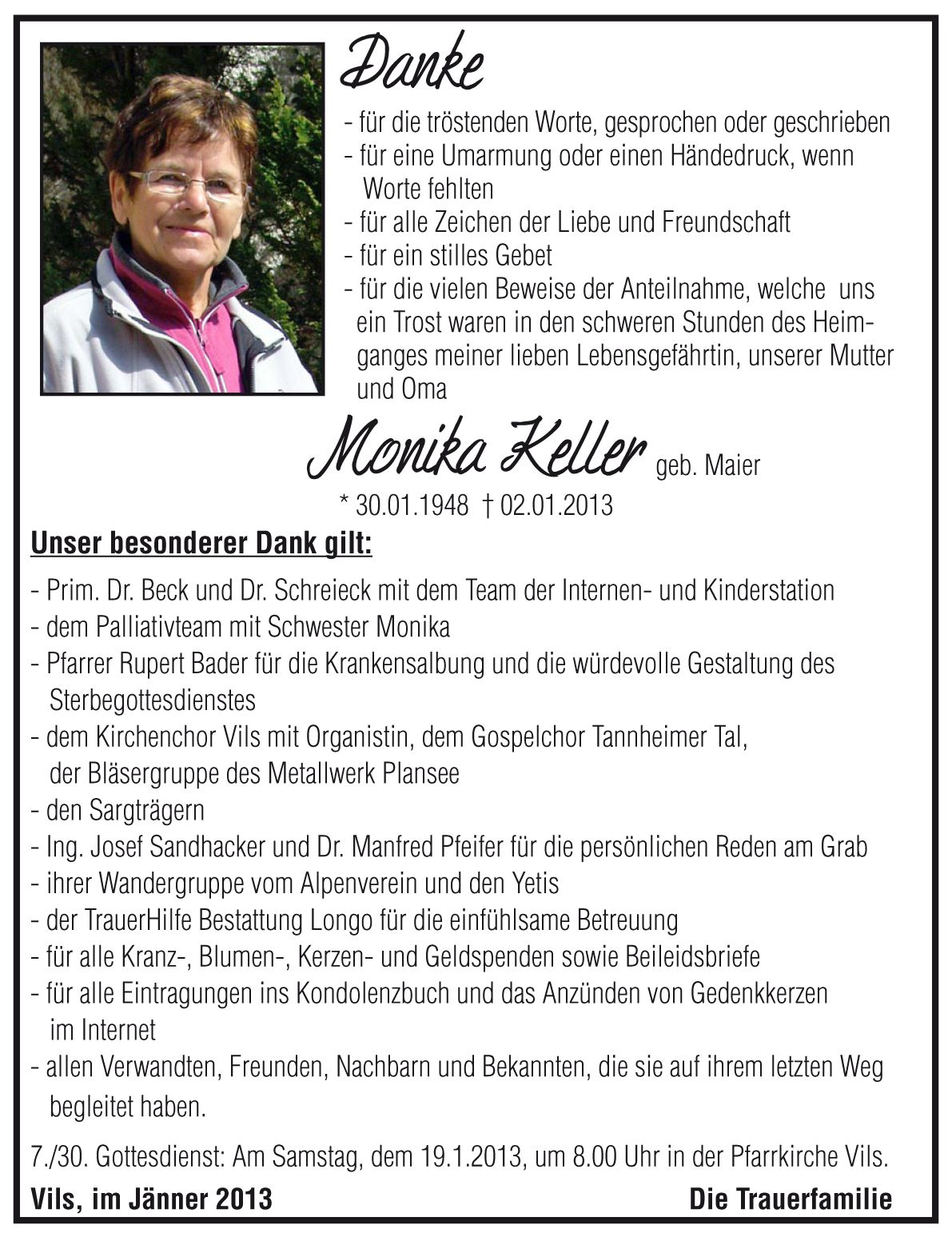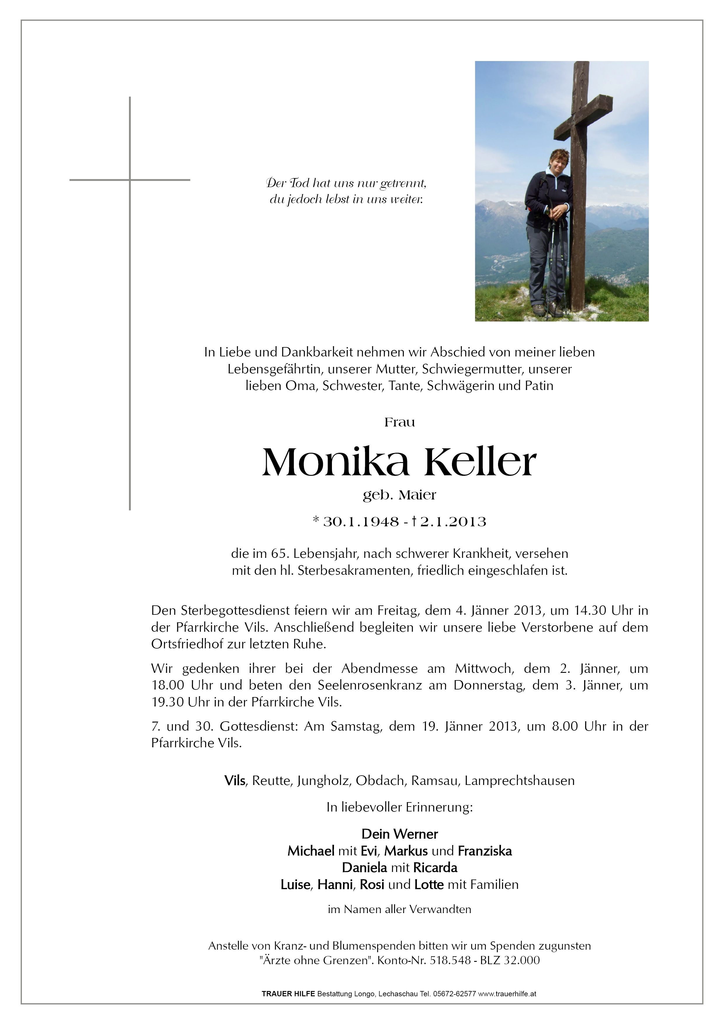 liebe Trauerfamilie - ich bin so froh ,das ich Monika im Sommer noch getroffen habe und fest in die Arme nehmen konnte. Ihr wart gerade vom Urlaub zurueckgekommen und Monika war so zuversichtlich.