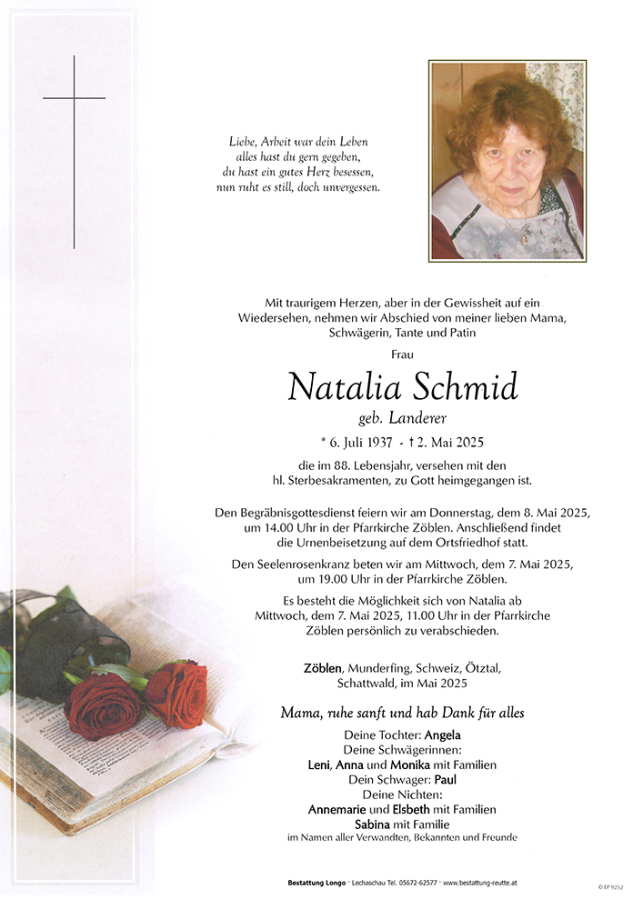 Nur Zeit hilft den Schmerz zu heilen, mit der Hoffnung an unseren christlichen Gluben, auf ein Wiedersehen.