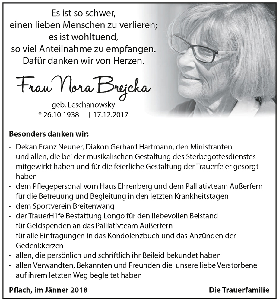 Nora! Du und meine Mam - ihr ward ein wunderbares Team! Euch verband eine besondere Freundschaft, ihr hieltet geistvolle Gespräche, hattet Freude am gemeinsamen Tun! Für mich sind die Begegnungen mit dir und deiner Familie in meiner Langlauf-Jugendzeit in wertvoller Erinnerung! Mein Mitgefühl für Euch -Helmut, Jörg und Heimo!
