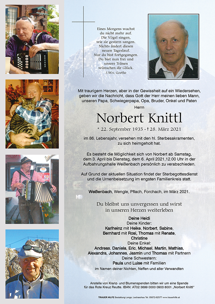 Kondolenzbuch für Norbert Knittl