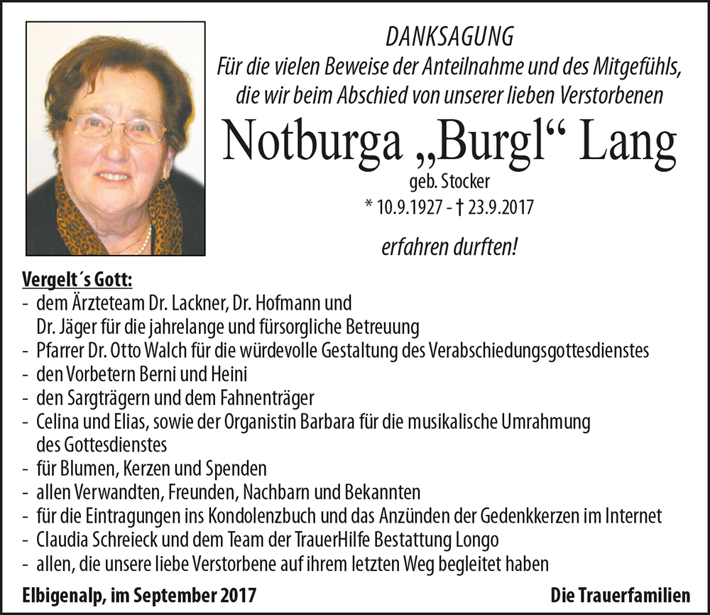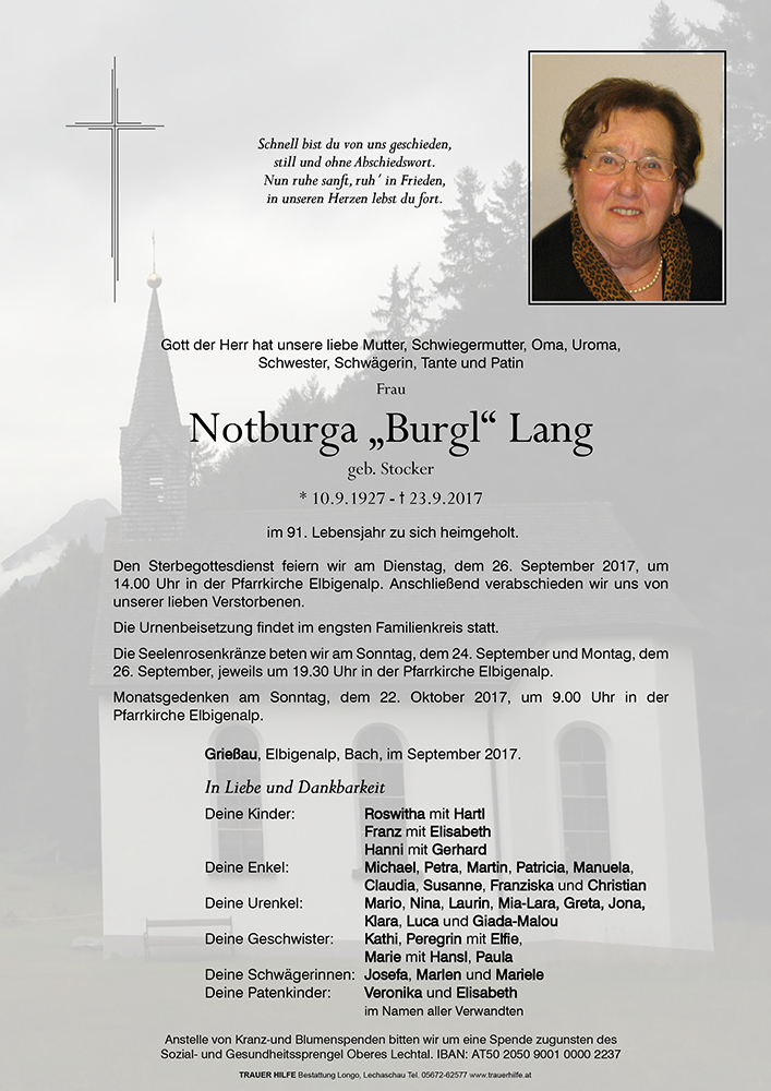 Kondolenzbuch für Notburga Lang