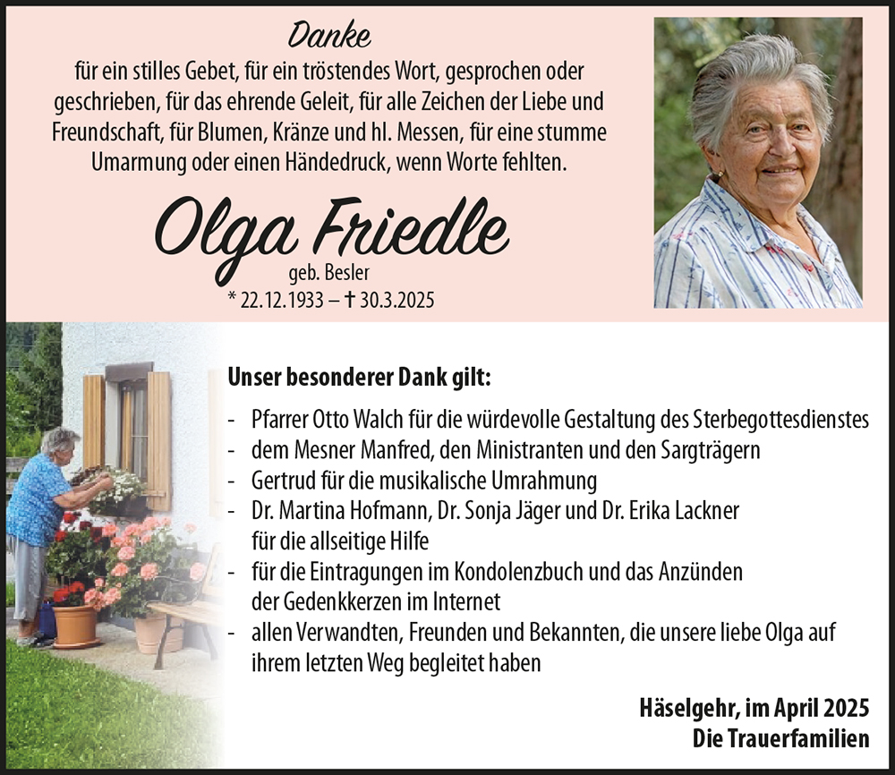 Kondolenzbuch für Olga Friedle