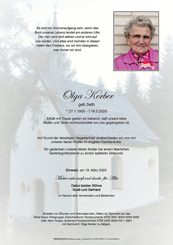 Kondolenzbuch für Olga Kerber