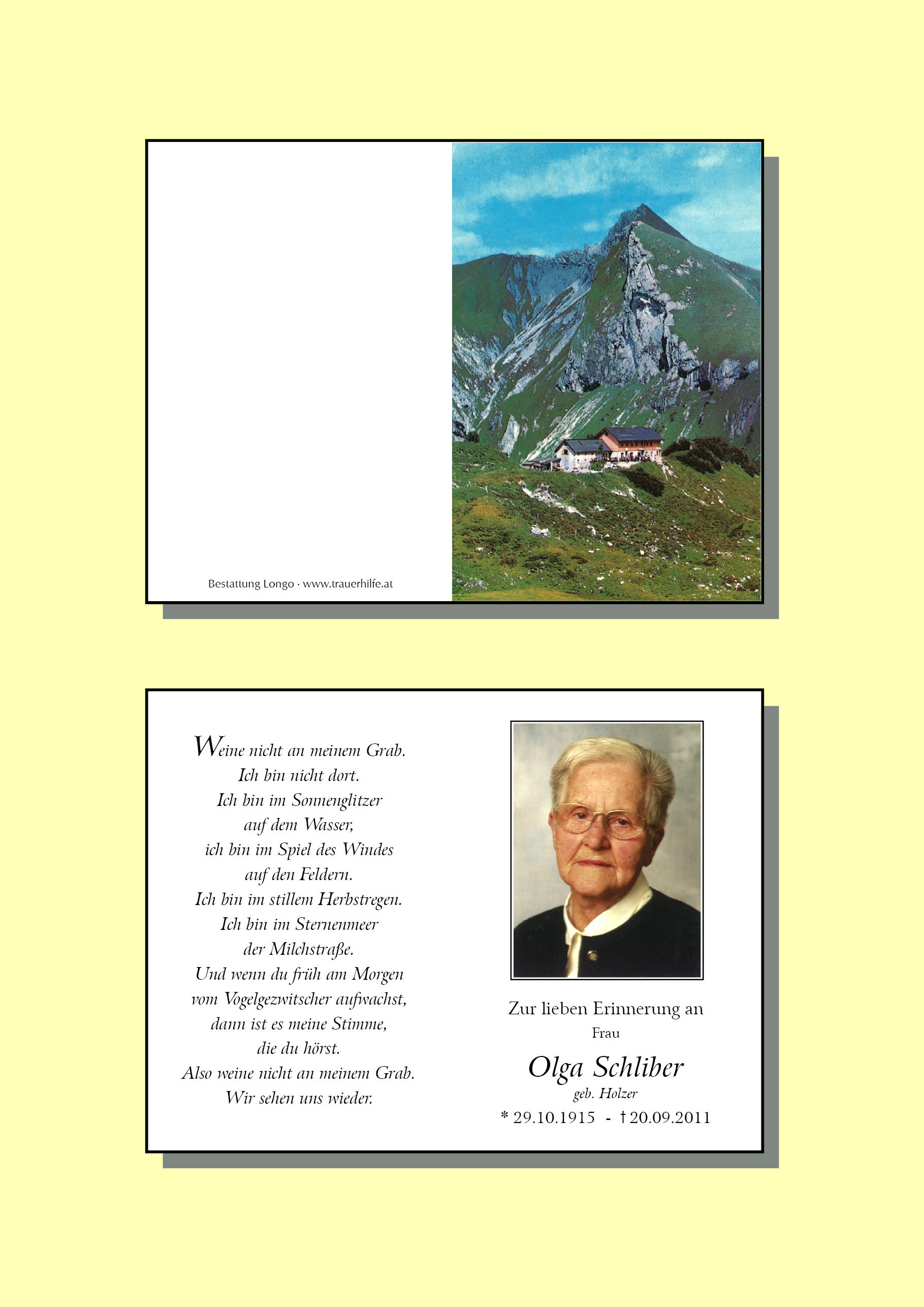 Kondolenzbuch für Olga Schliber