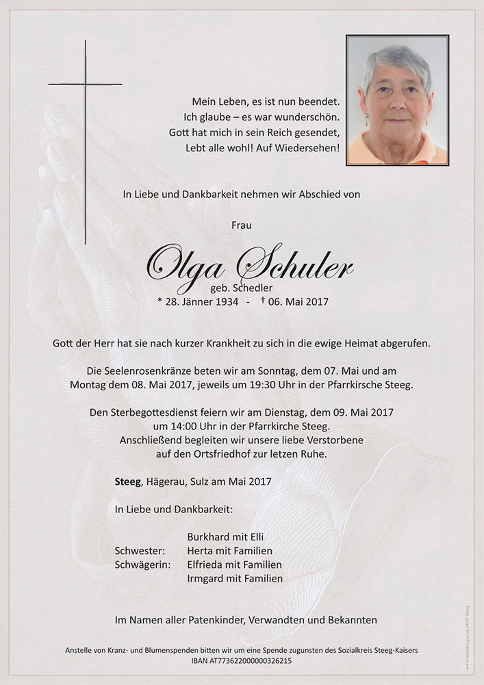 Kondolenzbuch für Olga Schuler