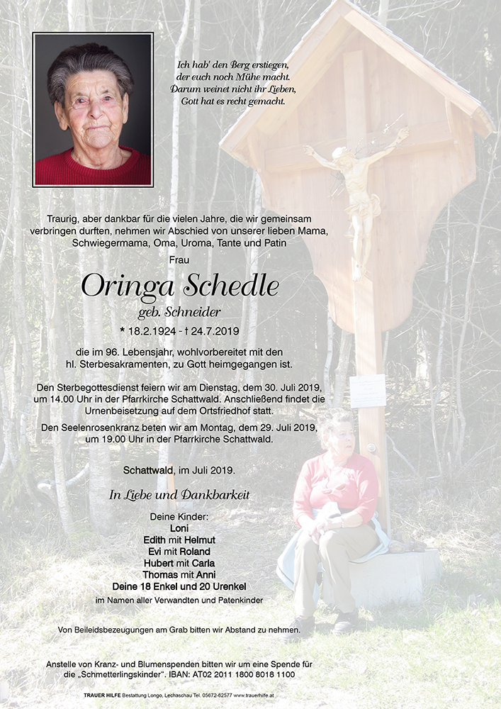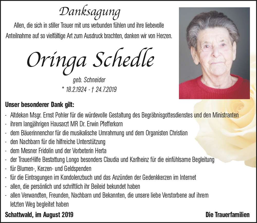 Kondolenzbuch für Oringa Schedle