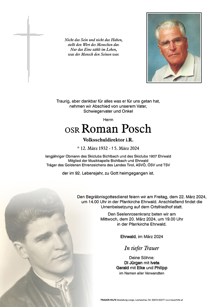 Kondolenzbuch für OSR Roman Posch