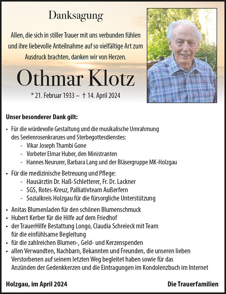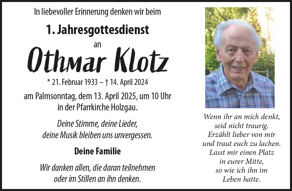 Kondolenzbuch für Othmar Klotz