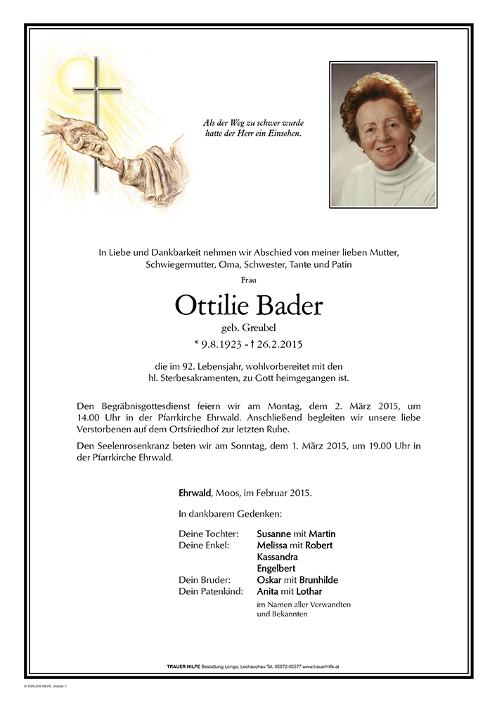 Kondolenzbuch für Ottilie Bader