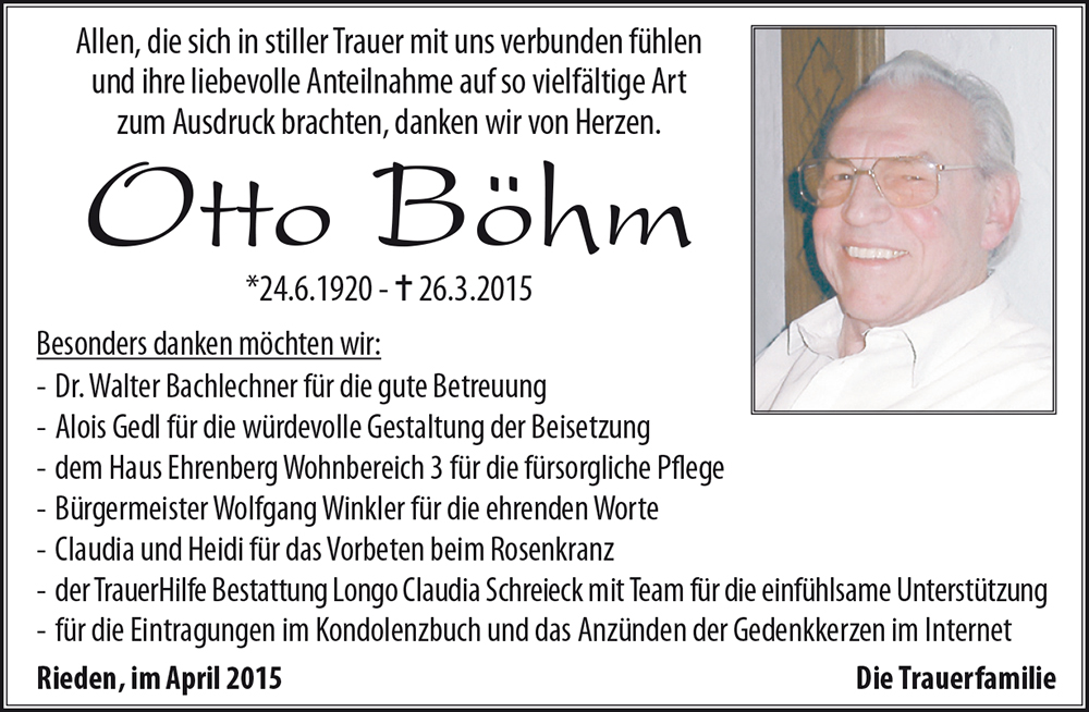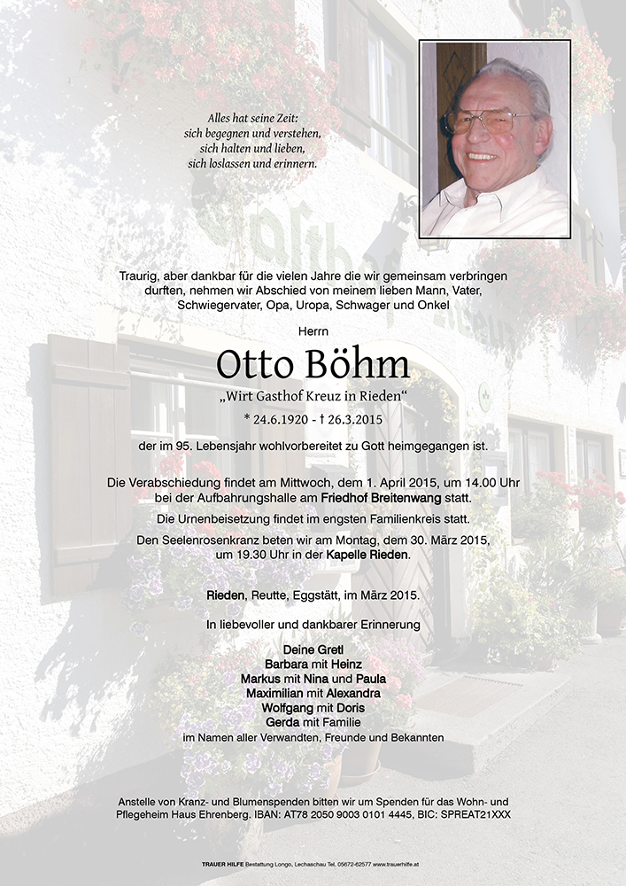 Kondolenzbuch für Otto Böhm