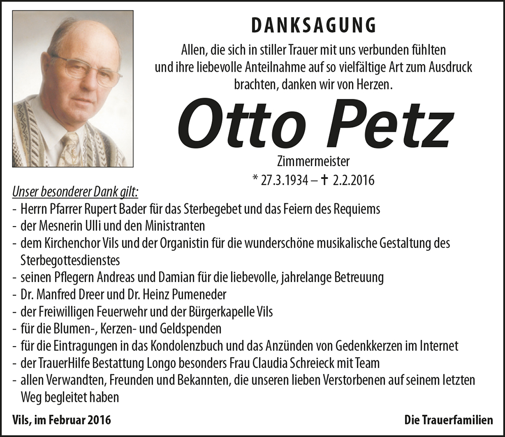 Herzliches Beileid und viel Trost auch von unserer Seite - möge unserem lieben Nachbarn Otto nun das ewige Licht leuchten. Wir wünsche ihm Ruhe und Freiden!